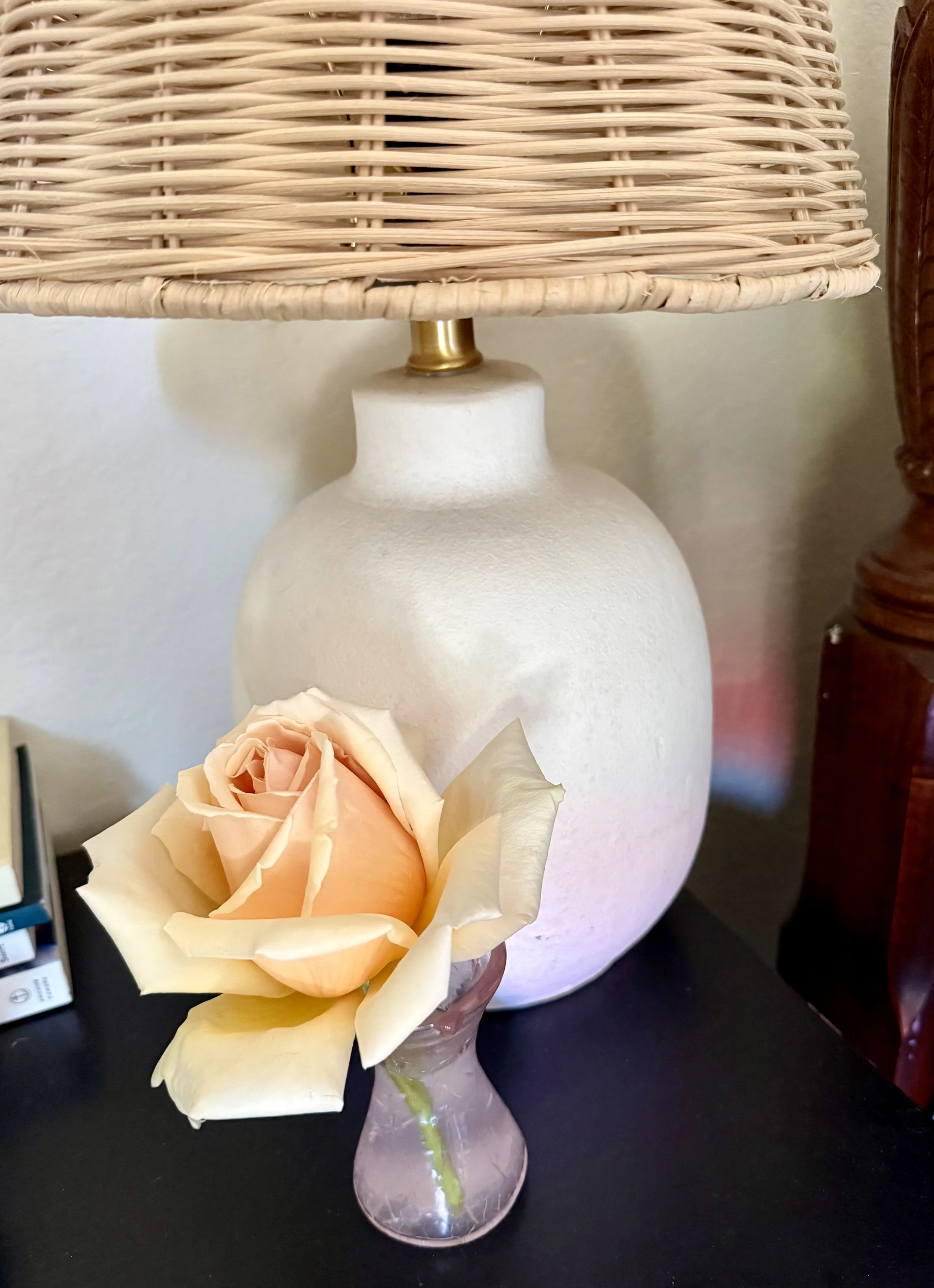 This rose from the garden carries a scent that reminds me of something in the Cotswolds—though I can’t quite place it. Set in a small bud vase by my bedside, it’s drawn me back again and again throughout the day to breathe it in.