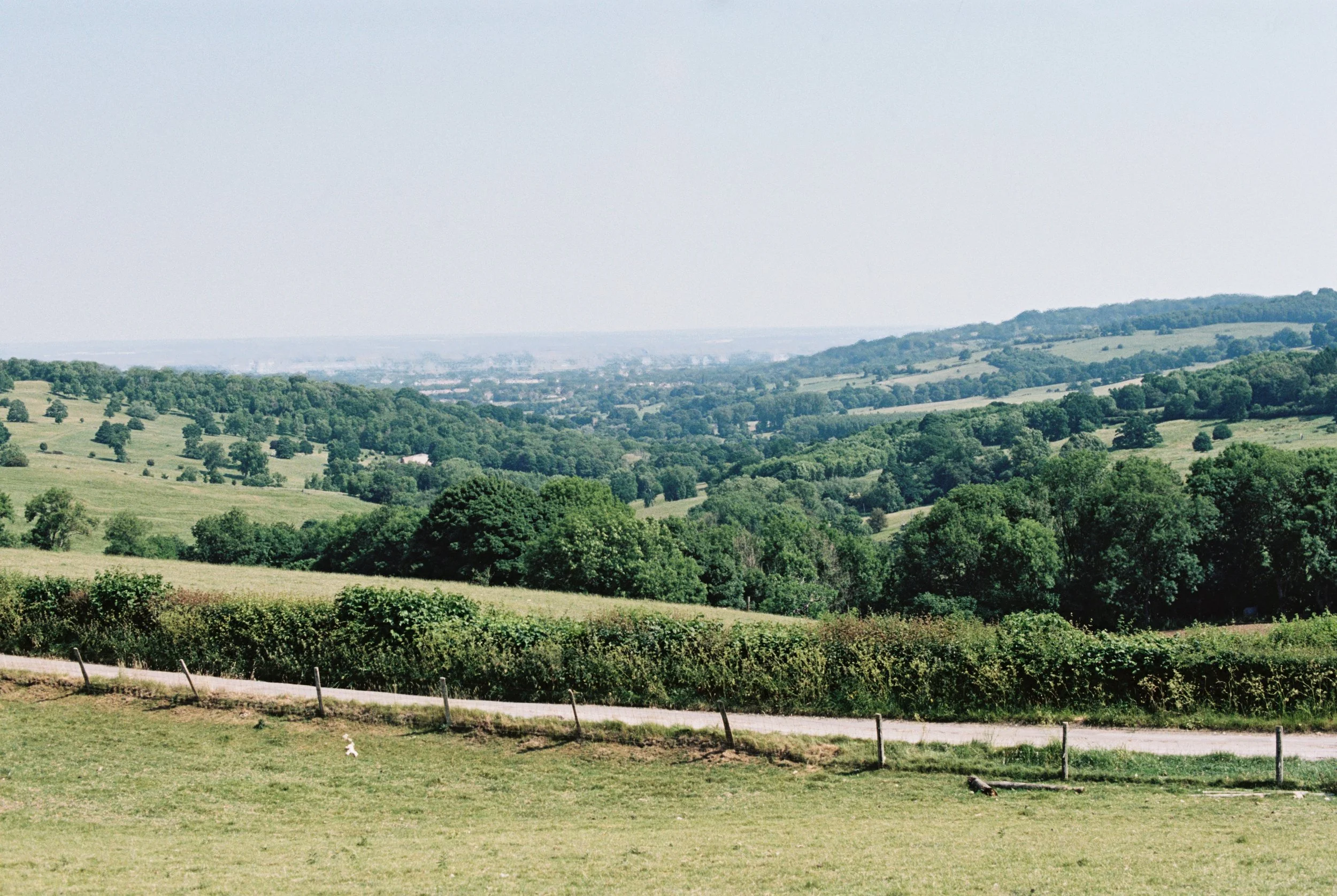 rolling countryside and farmland connected by lanes and footpaths